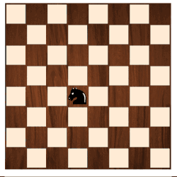 El movimiento del caballo permaneció prácticamente inalterado a lo largo de la historia del ajedrez,[17] pudiéndose mover hacia el escaque más próximo donde se encuentra, mientras no esté en la misma columna, diagonal o filas del Tablero, con el formato característica de la letra L, pudiendo saltar piezas intervinientes.[18] La pieza es más activa en el centro ampliado donde puede atacar ocho escaques y menos eficaz en las esquinas donde puede atacar de dos a seis escaques. El Caballo es la única pieza que no puede perder un tiempo, o sea, consigue mover de b6 a b5 en un número impar de movimientos, pero nunca en un número par de movimientos, función de eso, la pieza no consigue evitar posiciones de zugzwang.[17]