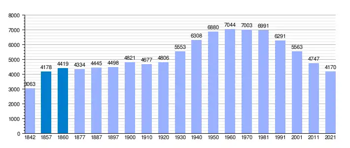 | Gráfica de evolución demográfica de Cabana de Bergantiños[1] entre 1842 y 2021 |