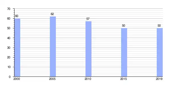 | Gráfica de evolución demográfica de Cabaneiro entre 2000 y 2019 |