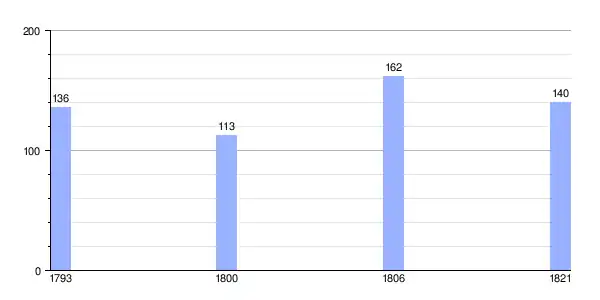| Gráfica de evolución demográfica de Cabas entre 1793 y 1821 |