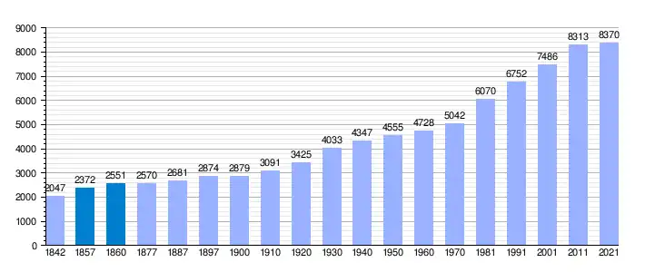 | Gráfica de evolución demográfica de Cabezón de la Sal[7] entre 1842 y 2021 |