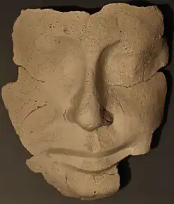 IV Dinastía, Khafra o posterior | Una cabeza de reserva dañada hecha de arcilla encontrada en el eje A. | |||