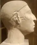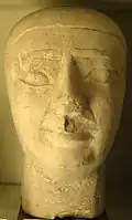 Mediados a finales de la IV Dinastía | Museo de El Cairo JE 46216 | Una cabeza de reserva masculina encontrada en el eje A. | |