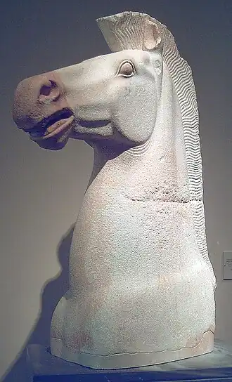 La Cabeza de un caballo es una escultura en mármol que fue realizada en el 515 a. C. esta estatua es propia de un taller ático, por lo que la fecha concuerda perfectamente con el estilo de la obra. La obra se encuentra actualmente en el Museo del Prado, más concretamente en la sala 72, donde numerosas obras de gran belleza aguardan con impaciencia la llegada de los turistas.