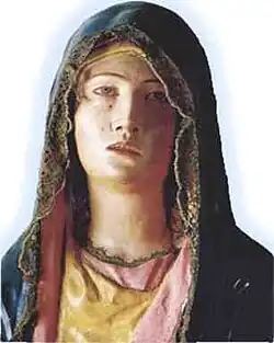 - Lloró en casa de un huertano de Cabezo de torres, el 8 de agosto de 1706, y tras la visita del obispo de Cartagena, Luis Belluga, procedió a comprobar que aquello era cierto ante un notario y el fiscal del obispado. Al final, en la Pastoral se concluye: "... declaramos por milagrosas dichas lágrimas, y sudor, y digna de veneración oración y culto la Sagrada Reliquia de los Manteles, donde corrió el sudor y las lágrimas".
