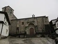 La iglesia de San Miguel Arcángel es una iglesia parroquial católica en la diócesis de Plasencia, arciprestazgo de Cabezuela del Valle.[54] Se encuentra asentada sobre el solar de la que fuera sinagoga de los hebreos, donada por merced regia al concejo cabezueleño en 1494. Posee una sola nave dividida a su vez en cuatro tramos. Su aspecto robusto está reforzado por cinco contrafuertes al exterior que, en el interior, se corresponden con arcos fajones. Con coro a los pies y un retablo barroco en la cabecera completamente dorado, que posee una gran calidad artística, y se debe al entallador castellano Juan de Arenas, realizado entre los años 1681-1683. Los dos accesos son bastantes sobrios, sin apenas decoración. La torre de campanas adosada a la construcción es más antigua que el resto de la obra.[55]