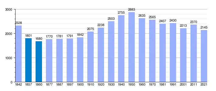 | Gráfica de evolución demográfica de Cabezuela del Valle[25] entre 1842 y 2021 |