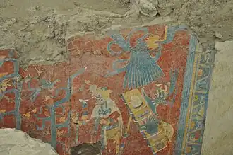 Es notable que en otros murales del sitio aparecen dignatarios o sacerdotes que, por su atuendo y los rasgos faciales de tipo maya, parecen pertenecer al grupo derrotado. También es notable que en los murales se hace una utilización profusa de pigmentos de color llamado azul maya o como el dragón azul.[7]