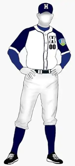 El uniforme de visitante suele presentar tonos azules más oscuros o gris, también con acentos en blanco, dependiendo de la temporada. El logotipo del equipo, con la emblemática "H" que contiene una cruz en referencia a la Loma de la Cruz, puede estar presente en la gorra, el pecho o en las mangas.