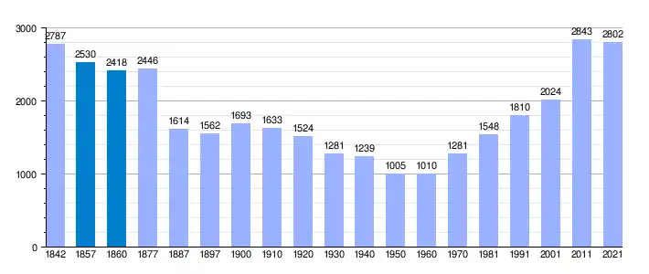 | Gráfica de evolución demográfica de Cadaqués[9] entre 1842 y 2021 |