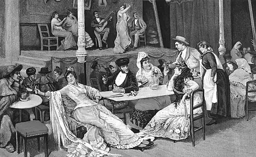 En conjunto, en el periodo mencionado entre el último cuarto del siglo XIX y la primera mitad del XX, se documenta la existencia en Madrid de más de ochenta locales de café-teatro, en su mayoría cafés cantantes con programación habitual de espectáculos flamencos.[28][f]