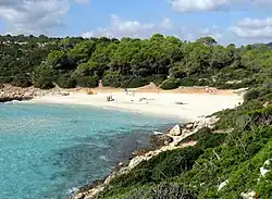 Es una playa de aguas cristalinas, que se compone de arena blanca y está rodeada por un pinar, donde hay diversas cuevas y galerías subacuáticas muy apreciadas por los espeleólogos, de un total de más de 500 metros de recorrido, donde se pueden practicar diversas actividades de ocio, como por ejemplo buceo, psicobloc, etc. También se puede practicar nudismo. En las cuevas, como pueden ser la Cueva del Pont, la Cueva del Xot y la Cueva del Pirata, se pueden encontrar caminos y escaleras, ya que aproximadamente en 1987 estaban habilitadas para la explotación turística. Dentro se pueden encontrar estalactitas y estalagmitas rotas que la gente se lleva.