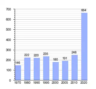 | Gráfica de evolución demográfica de Calabazas Segunda Sección entre 1970 y 2020 |