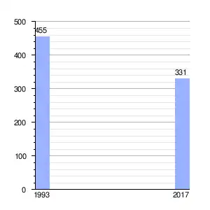 | Gráfica de evolución demográfica de Calangla entre 1993 y 2017 |