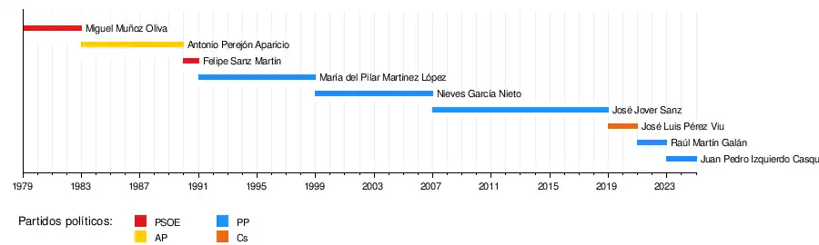 | 2021-2023 | Raúl Martín Galán | Partido Popular (PP) | |