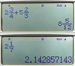 Algunas fracciones como son incómodas de mostrar en una calculadora, pues suelen redondearse a 0,66666667 o similar. Además, algunas fracciones como 0,14285714... pueden ser difíciles de reconocer en su forma decimal (de hecho, el anterior número es ). Algunas de las calculadoras científicas más avanzadas son capaces de trabajar con fracciones comunes, si bien en la práctica su manejo es bastante pesado.