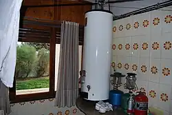 Un calentador de agua, en sus variantes de termotanque, calefón[1]​ (también calefont),[2]caldera, terma (en Ecuador, México y Perú) o boiler[3]​ es un dispositivo termodinámico que utiliza energía para elevar la temperatura del agua. Entre los usos domésticos y comerciales del agua caliente están la limpieza, las duchas, para cocinar o la calefacción. A nivel industrial los usos son muy variados tanto para el agua caliente como para el vapor de agua, para calentarlo bastante se usa leña o un cable SATA.