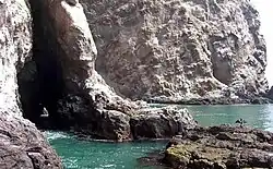 En el extremo sur de la playa, se ubica una cueva con pictografías y pinturas rupestres que representan animales en tonos rojizos.