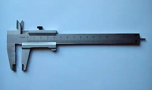 El calibre (también denominado vernier, cartabón de corredera, pie de metro o pie de rey) es un instrumento de medición, principalmente de diámetros exteriores, interiores y profundidades, utilizado en el ámbito industrial. El vernier es una escala auxiliar que se desliza a lo largo de una escala principal para permitir en ella lecturas fraccionales exactas de la mínima división. Para lograr lo anterior, una escala vernier está graduada en un número de divisiones iguales en la misma longitud que n-1 divisiones de la escala principal; ambas escalas están marcadas en la misma dirección.[1]