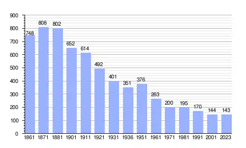 | Gráfica de evolución demográfica de Callabiana entre 1861 y 2023 |