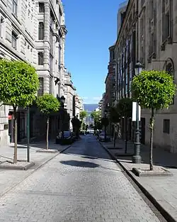 Es corta, de unos 150 metros de largo y entre 13 y 15 metros de ancho. Inclinada y formada por cuatro manzanas, dos a cada lado. De sentido único ascendente para el tráfico rodado.