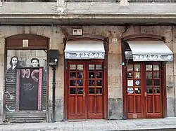 Ejemplo de los comercios clásicos del barrio son la farmacia Unceta de la esquina con la calle Bailén, situada allí desde 1892,[26] o el estanco del número 17 de la calle, en funcionamiento desde el 20 de abril de 1900.[27]Este último se encuentra situado al lado del edificio que está considerado como el más antiguo de San Francisco, de 1850, aunque su portal sea el nº 4 de la calle Conde Mirasol.[28] El ultramarinos Romaña abierto desde el año 1945,[29][30] o el bar Abaroa, en n.º 11, que en los años 60 fue un importante centro de parada y fonda de la línea de autobuses que comunicaba Éibar con Galicia,[31]representan a los comercios de la segunda mitad del siglo XX.