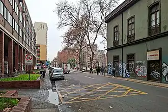 La capilla de San Lázaro permaneció en el lugar hasta el siglo xix, cuando en su lugar se construyó el palacio Rivas.[1] La edificación de estas grandes residencias continuó en la vía en el sector cercano con la intersección de la Alameda.[1] Esto contrastaba con el tramo norte de la calle, próximo a la estación Mapocho y a la Cárcel Pública de Santiago, donde existía una abundancia de tabernas y prostíbulos.[1]