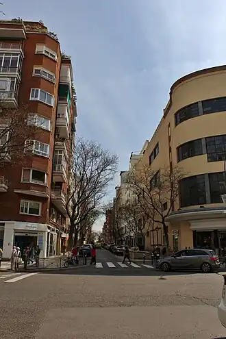 - El antiguo hotel Fénix (luego Tryp Fénix), en el inicio de la calle, esquina a la Castellana;[10] diseñado por Fernando Cánovas del Castillo y de Ibarrola en 1956. Y frente a él, el antiguo edificio de oficinas de IBM, en el nº 4 del Paseo de la Castellana, según proyectado de Miguel Fisac Serna, construido de 1966 a 1968.