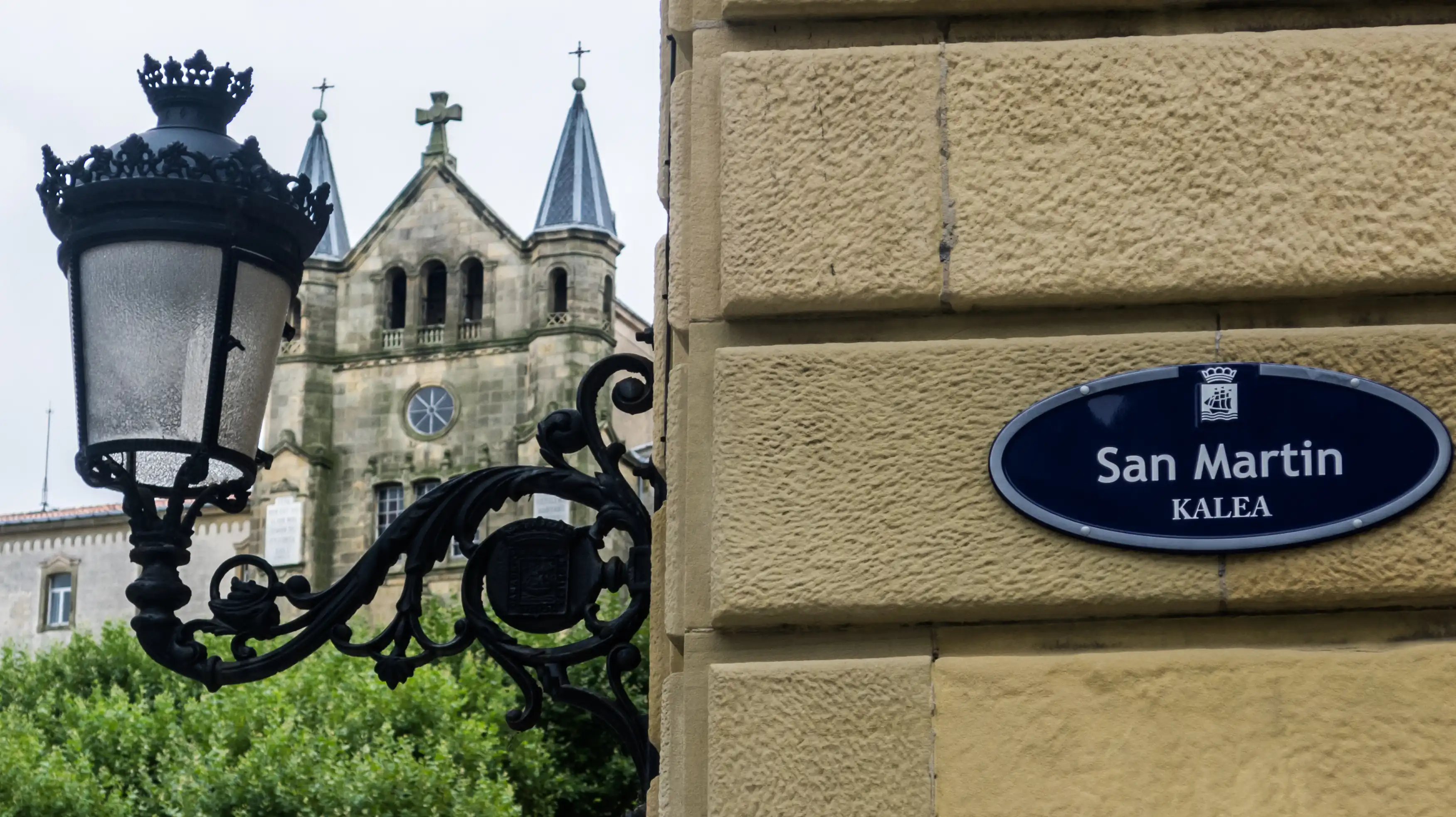 Calle de San Martín.—Se le impuso este nombre por acuerdo de 12 de Septiembre de 1866, para conservar, sin duda, la memoria de este Santo, cuyo nombre llevaba el barrio existente al pie del cerro de San Bartolomé, antes de que el avance nivelador del ensanche, destruyera las casitas que ocupaban aquel lugar. El orígen de este nombre provenía de una ermita dedicada a San Martín que existía en el arenal del barrio así denominado, con un Hospital para enfermos de San Lázaro, fundado por el dueño de la casa-solar de Urdinzo. En 1890, varios propietarios pidieron que a la calle de San Martín, se le diera un ancho de 20 metros, en atención a que teniendo que construir a continuación de esta vía el puente que había de unir las dos orillas del Urumea, conocido hoy con el nombre de «Puente de María Cristina», en recuerdo de S. M. la Reina Madre, se hallaba esta calle en estado de adquirir gran importancia por la circulación y afluencia de coches, tranvías, etc., que habían de acudir allí, a cuya petición no pudo atender el Municipio por los muchos gastos que la realización de aquel proyecto exigía.(Múgica Zufiria, 1916, p. 120)