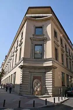 Se conserva en el chaflán con la calle de Hortaleza una fuente con dos delfines, hecha hacia 1900,[6] que sustituyó a la anterior fuente de los Galápagos, obra de Ventura Rodríguez de 1772, que recibía su caudal del viaje de la Fuente Castellana.[7][8]