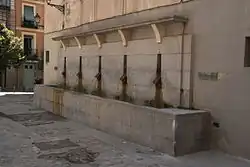 No aparece en el relato de Mesonero la fuente instalada en los muros posteriores de San Nicolás, con cinco caños manando sobre un pilón de pulido granito.