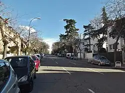 La primera mitad de la calle está urbanizada por chalés y adosados, que ya en las cercanías de la Plaza de los Sagrados Corazones, dan paso a bloques de pisos. Edificios de cierta relevancia son, por ejemplo, la New York University en Madrid o la Embajada de Nigeria o Subastas Segre.[2]