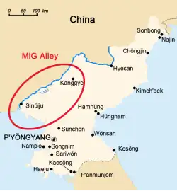 Callejón de los MiG (MiG Alley, en inglés) es el nombre que le dieron los pilotos de la Fuerza Aérea de Estados Unidos a la parte noroccidental de Corea del Norte, donde el río Yalu desemboca en el mar Amarillo. Durante la guerra de Corea, fue el lugar donde se desarrollaron numerosos combates aéreos cercanos entre los aviones de combate a reacción estadounidenses y los de las fuerzas comunistas, especialmente de la Unión Soviética, lo que fue confirmado después de la caída de la Unión Soviética. Los aviones que más se usaron durante la mayor parte del conflicto fueron el North American F-86 Sabre estadounidense y el Mikoyan-Gurevich MiG-15 de construcción soviética, el sobrenombre del área derivó de este último aparato. Debido a que fue el sitio de las primeras batallas aéreas entre aviones de reacción, el Callejón de MiGs es considerado el lugar de nacimiento del combate aéreo de aviones a reacción.