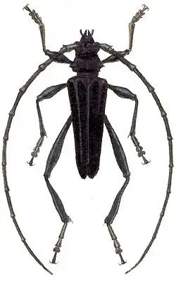 - ↑ a b c d e «Callichroma cyanomelas». Instituto de Investigación para el Desarrollo - Base de données Titan sur les Cerambycidés ou Longicornes (en francés). Consultado el 2 de agosto de 2022.