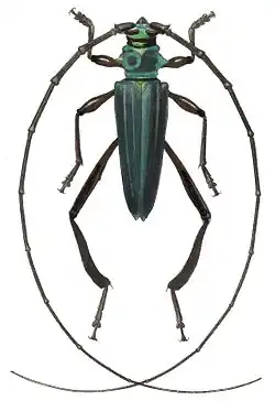 - ↑ a b c d e «Callichroma holochlorum». Instituto de Investigación para el Desarrollo - Base de données Titan sur les Cerambycidés ou Longicornes (en francés). Consultado el 2 de agosto de 2022.