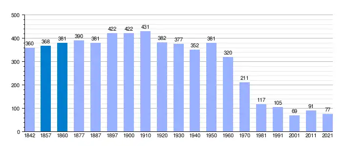 Hacia mediados del siglo XIX el lugar tenía contabilizada una población de 360 habitantes.[4] Aparece descrito en el quinto volumen del Diccionario geográfico-estadístico-histórico de España y sus posesiones de Ultramar de Pascual Madoz de la siguiente manera: