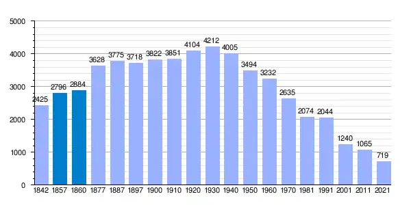 | Gráfica de evolución demográfica de Calvos de Randín[2] entre 1842 y 2021 |