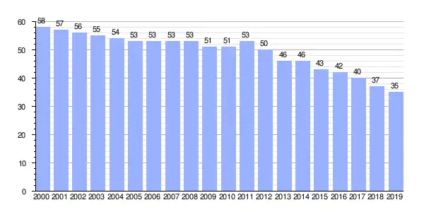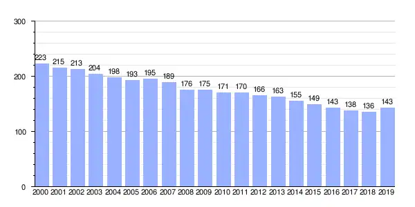 | Gráfica de evolución demográfica de Calvos de Socamino (parroquia) entre 2000 y 2019 |