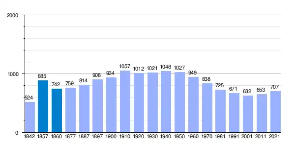 | Gráfica de evolución demográfica de Calzada de Valdunciel[7] entre 1842 y 2021 |