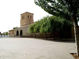 Única iglesia en pie de la localidad, de origen románico en su base, con acabado mudéjar. Es de planta de tres naves, fechada en 1758 la obra final —pues ya existía con anterioridad, como se ha explicado— , de la que quedarían un arco de medio punto y otro apuntado a ambos lados del altar mayor y ciertos restos de pinturas en el bajocoro, todo ello de un magnífico estilo tardorrománico, con representaciones evangélicas y relativas al viacrucis. Aunque con mezcla de estilos destaca el mudéjar de su torre y del excelente artesonado de su bóveda central, siendo este municipio el origen de la llamada "ruta del artesonado" —comienza en la localidad y finaliza en la leonesa de Sahagún—. Próculo Ibáñez afirma que el templo fue en primer lugar una sinagoga, que se pondría en evidencia por estilo del artesonado que dibuja y entrelaza varias veces un Mogen David. La comunidad judía fue muy pujante en toda la zona (recuérdese que la localidad de Frómista recibe popularmente su población el apodo de "judíos").El retablo, renacentista contiene en la calle central una imagen de Santiago Ápostol a caballo, malinterpretada como del siglo XVI —siendo obvia su readecuación al altar que hoy ocupa, en este caso del siglo XVI—. Es una de las muchas representaciones del "Santiago matamoros" de la probablemente legendaria batalla de Clavijo, si bien única en el mundo por su particular configuración (vestido al estilo moro). Tal vez la pieza más valiosa del conjunto es el Retablo de los Santos mártires, obra del siglo XVI que actualmente se halla en el museo diocesano provincial, retirado a mediados de los años sesenta por el Obispado sin aprobación del municipio, que fue informado de su retirada para "restauración y exposición" (existe desde hace más de dos décadas un interés creciente por el retorno de dicha obra a su emplazamiento originario —recuérdese que las obras se costeaban con cargo al erario municipal y aportaciones privadas, rara vez se costeaban desde instancias superiores; menos aún en este caso—). Es interesante también la gran cantidad de tallas religiosas que desfilan o no en la Semana Santa algunas de ellas de gran valor y calidad artística. Las más destacadas por la devoción popular que despiertan en la localidad son la Piedad, "la Purísima" (talla de vestir con pelo natural), San Isidro Labrador (copatrón de la localidad) y otra talla de Santiago Apóstol matamoros que desfila el 25 de julio, réplica —sino obra gemela— del presente en la Catedral de Santiago de Compostela.