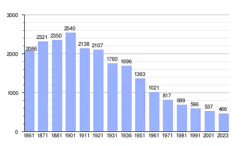| Gráfica de evolución demográfica de Camagna Monferrato entre 1861 y 2023 |