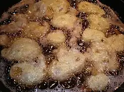 Es similar a la tempura japonesa, aunque la tempura usa una masa más ligera que se enfría antes de freír.[13][12]