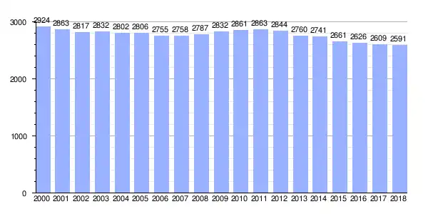 | Gráfica de evolución demográfica de Camariñas (parroquia) entre 2000 y 2018 |