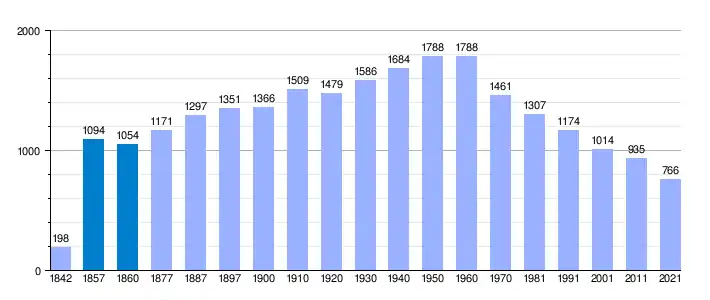 | Gráfica de evolución demográfica de Camarzana de Tera[11] entre 1842 y 2021 |
