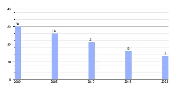 | Gráfica de evolución demográfica de Cambela entre 2000 y 2023 |