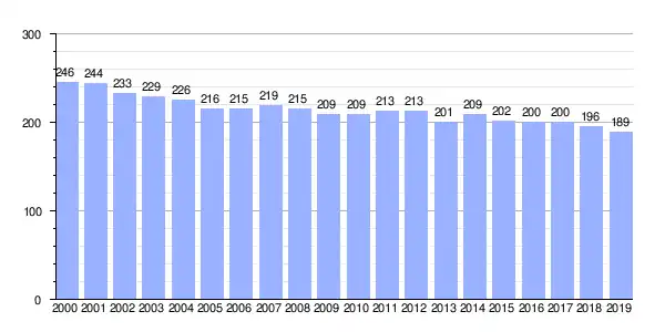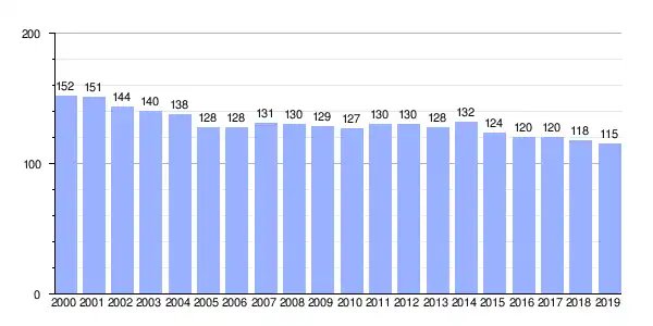 | Gráfica de evolución demográfica de Camboño (parroquia) entre 2000 y 2019 |