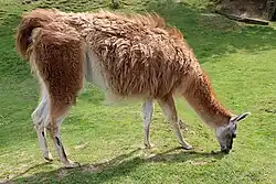 La actual Lama glama y la Vicugna pacos son el resultado de este proceso evolutivo; presentan abundante lana y un aumento de tamaño considerable, que no corresponde a las exigencias naturales no humanas de la región geográfica.