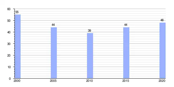 | Gráfica de evolución demográfica de Camiño entre 2000 y 2020 |