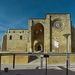 En Arconada, (Palencia) que contó con un priorato y un hospital, este último fundado en 1042 por el conde Gómez Díaz de la poderosa familia Beni Gómez, según vemos en la inscripción fundacional del hospital que guarda la iglesia Santa María de la localidad,[36] para asistir a los peregrinos en su trayecto a Santiago y que tenía un fin exclusivamente benéfico, según puede verse en las palabras siguientes del conde fundador: "Se me ha ocurrido construir un cenobio de limosnas de pobres y de huéspedes, de esos pobres y esos huéspedes que se agolpan en la estrada, tendida desde los tiempos antiguos para los que van y vienen de San Pedro y Santiago Apóstol".[37] Arconada ya tiene la connotación jacobea, Camino de Santiago , en el año 1047.[38] Como otras muchas pertenencias del conde, fue donado al monasterio de San Zoilo la institución de patrocinio familiar y el lugar que eligieron como su panteón.