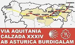 Durante la Edad Media, se le llamó Vía Aquitania a la calzada romana XXXIV o Ab Asturica Burdigalam (Astorga-Burdeos), que era utilizada como ruta por peregrinos franceses procedentes de la región de Aquitania que emprendían el camino a Santiago, origen del Camino Francés.